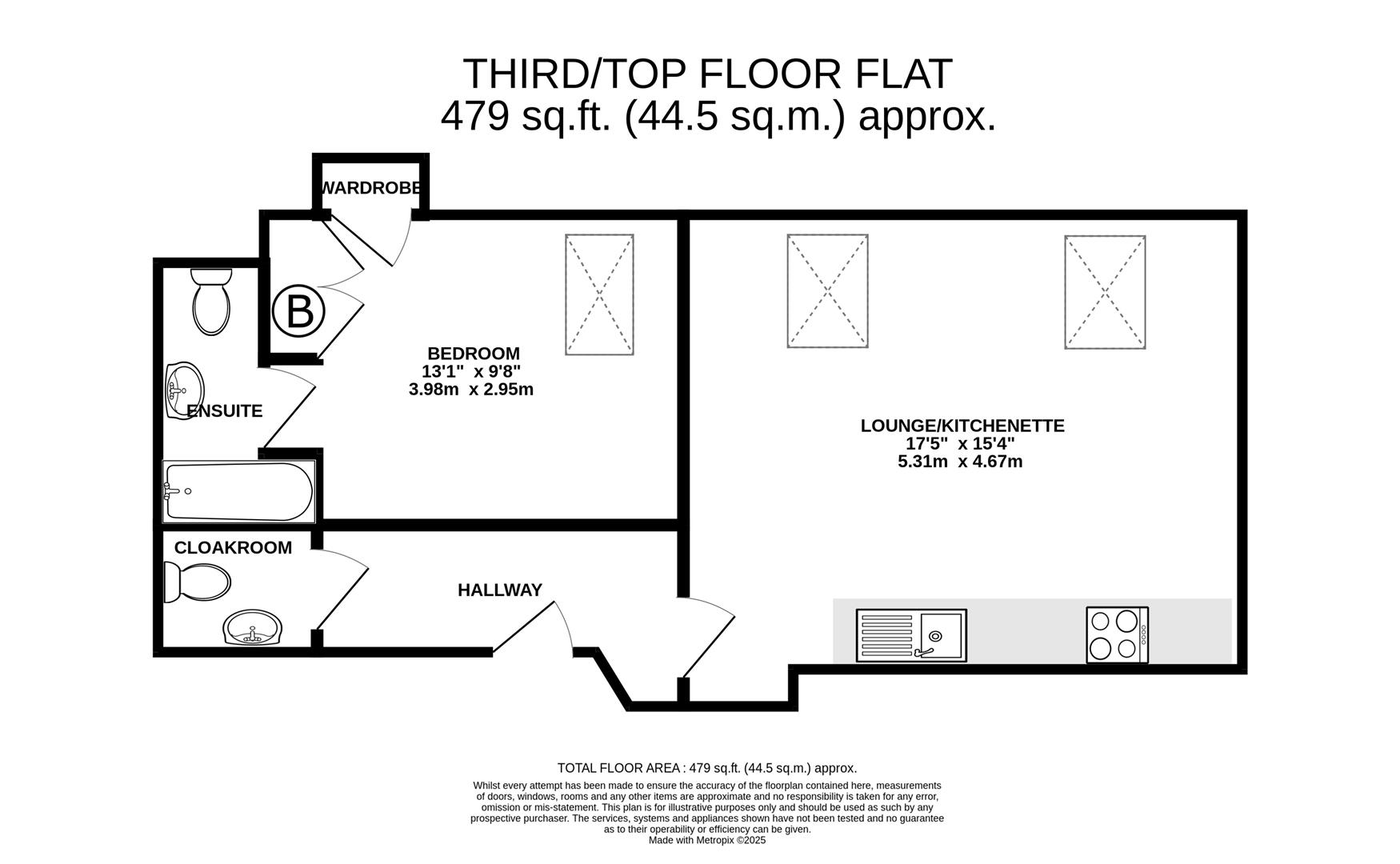 TOP FLOOR FLAT | LOUNGE/KITCHENETTE | ONE BEDROOM | ENSUITE BATHROOM | CLOAKROOM | PARKING SPACE | LIFT | GROUND RENT £450 PER ANNUM | SERVICE CHARGE £2200 PER ANNUM | 115 YEAR LEASE REMAINING | COUNCIL TAX BAND A