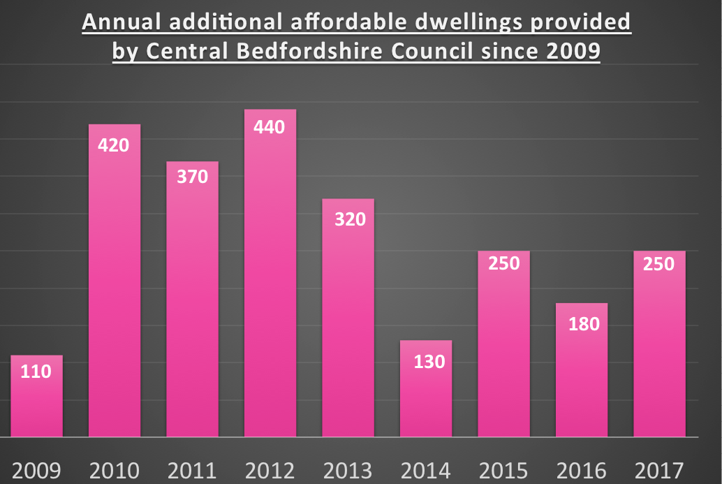 An average of only 274 Affordable Homes per year have been built by Central Bedfordshire Council in the last 9 years