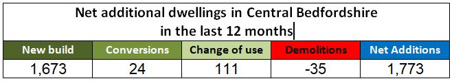 While these all added to the total housing stock in the Central Bedfordshire area, there were 35 demolitions to take into account.