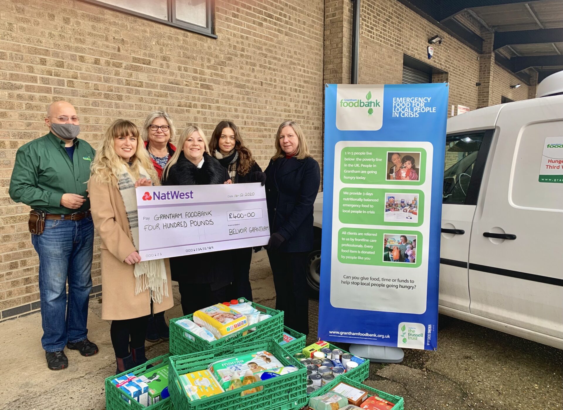 The donation, which was warmly received, will help families and single people living in the Grantham area and will go some way to providing them with essentials over the forthcoming holiday period.