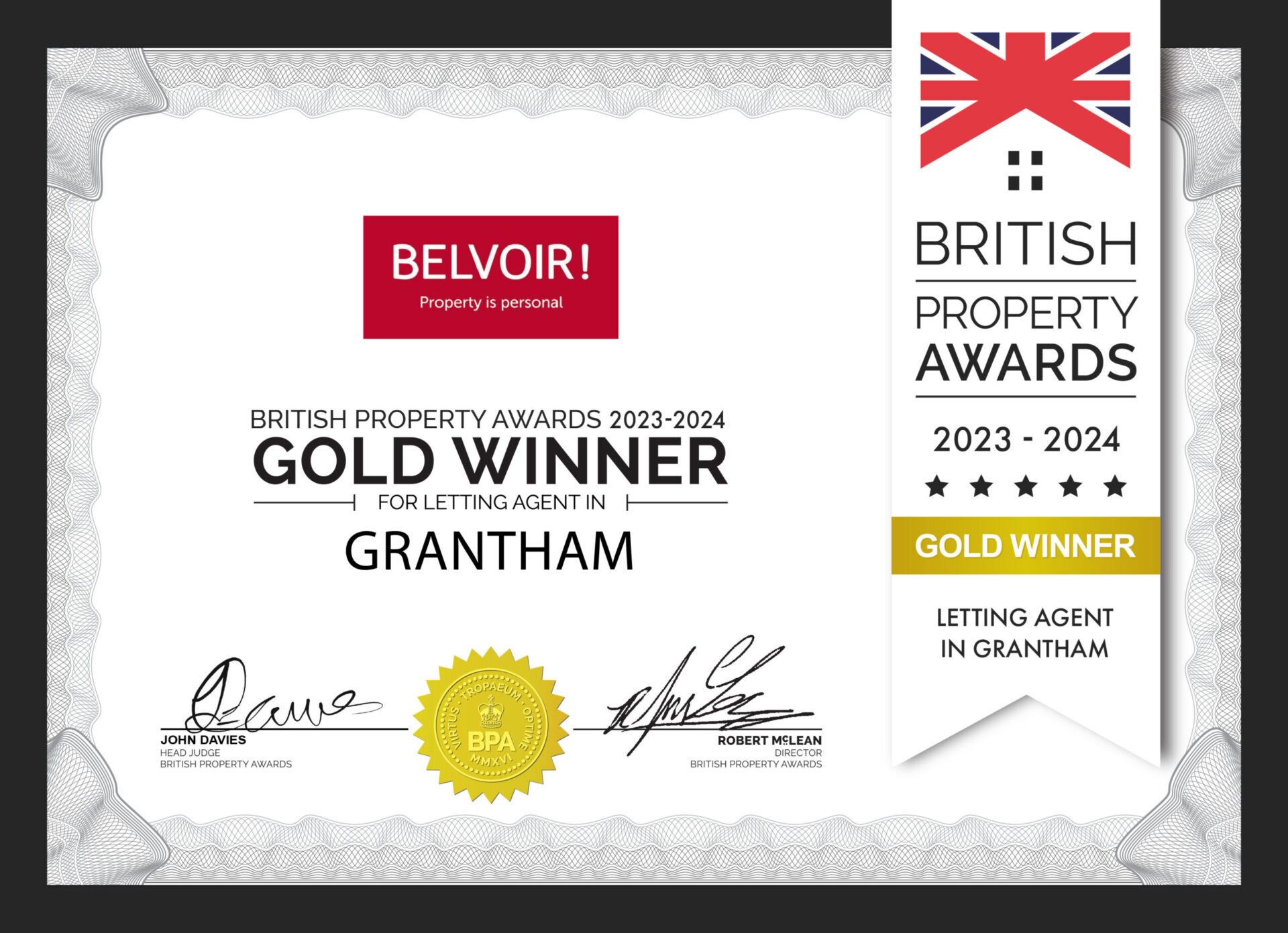 Belvoir Grantham have just won the British Property Lettings Award for Grantham, for the FOURTH successive year!