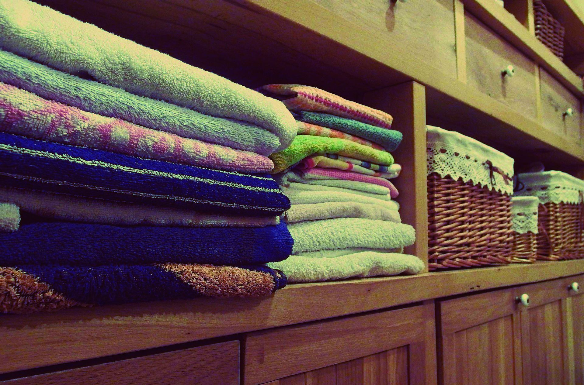If you’re selling your home, the only items to have on display are those that add a sense of style and comfort: think soft bathrobes and luxury-branded products like Rituals or Jo Malone.