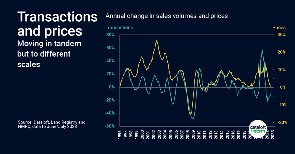 The intuitive assumption would be a parallel movement between property prices and sales volumes. However, history paints a different picture. Sale volumes and prices, while generally moving in tandem through property market cycles, react differently under economic pressures.