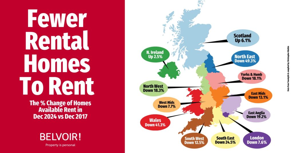 Interestingly, regions like Scotland and Northern Ireland have bucked the trend, experiencing slight increases in rental availability.