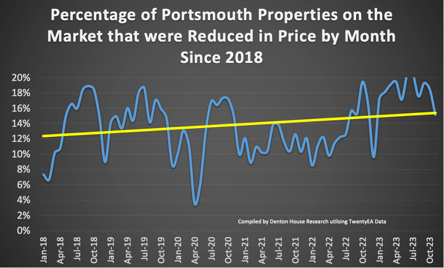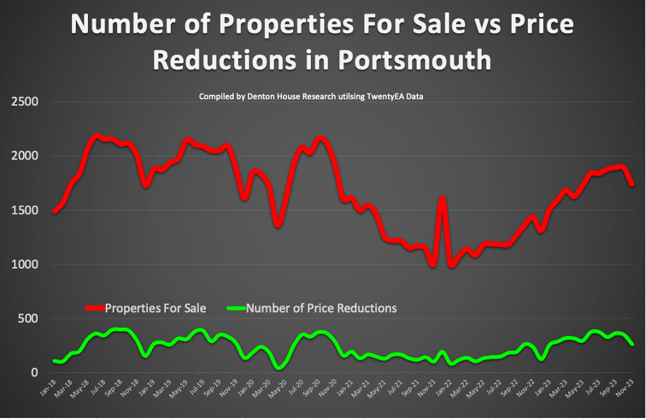 As you can see, there has been a substantial increase in properties on the market and thus price reductions in the Portsmouth area in the last year.
