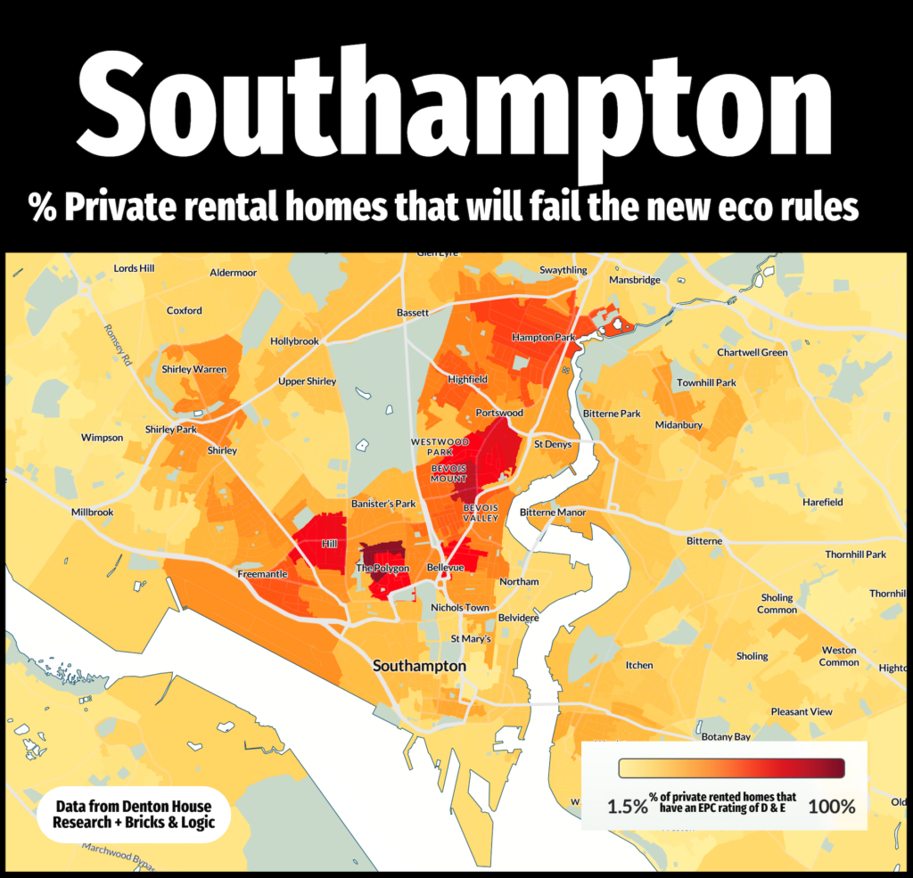To visualise that better, I have created this heat map to show the extent of the issue for Southampton landlords.