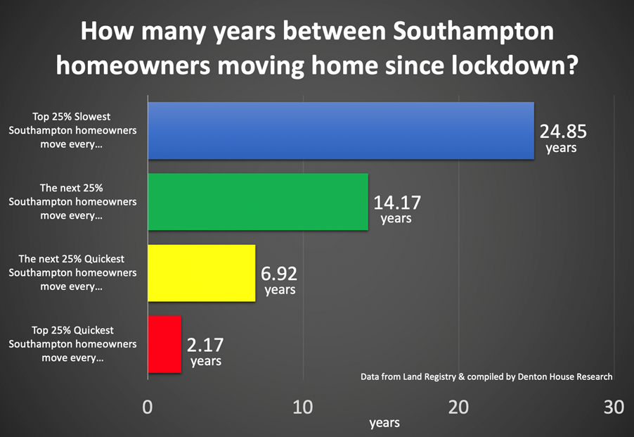 50% of Southampton house sellers in 2022 had only been in their old home on average 4 years and 33 weeks.