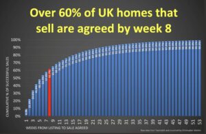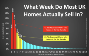41.8% of all UK house sales take place in the first 4 weeks of the home being marketed and that rises to 61.7% of sales within 8 weeks. If you get to week 12 unsold, you only have a 14.5% chance of selling your home.
