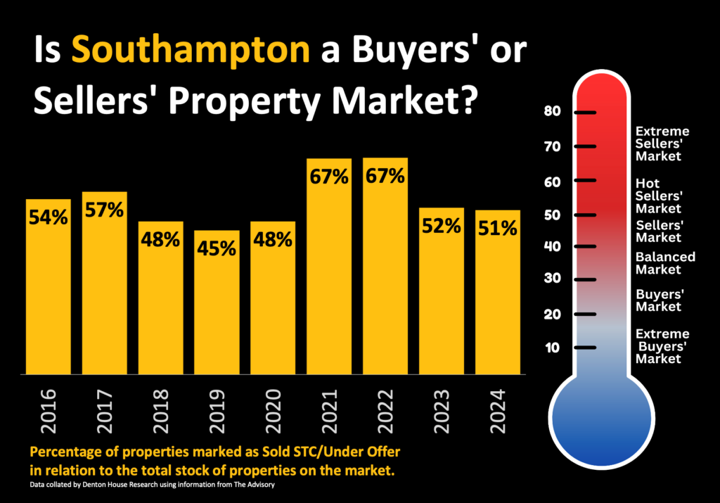 For those familiar with our previous analyses on the Southampton property market, you’ll know that one of the best ways to determine whether it’s a buyer’s, seller’s, or balanced market is by looking at the ratio of properties marked as “Sold STC” or “Under Offer” compared to the total number of properties available for sale.