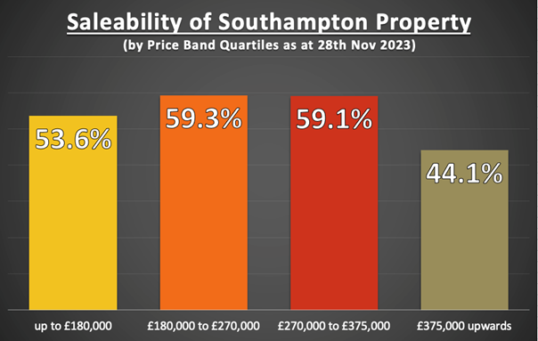 So, having split the Southampton property market approximately into four equal sizes, the results in terms of what price band has sold (subject to contract or stc) the most is quite enlightening –