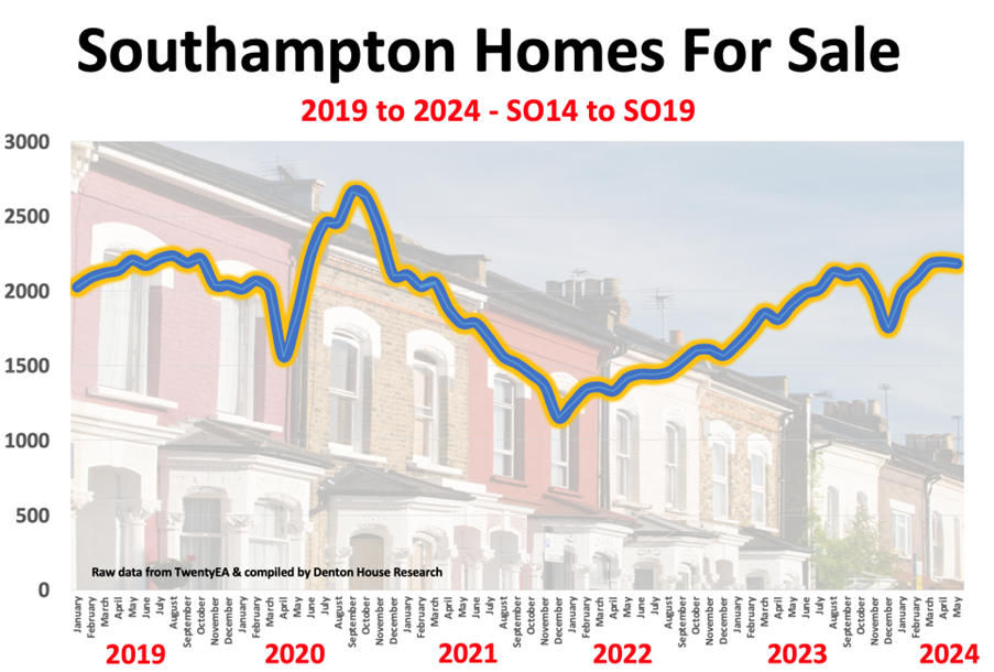 Thus, the number of UK net homes sales is lower, yet the number of homes for sale is much higher. Delving deeper into the Southampton stats…