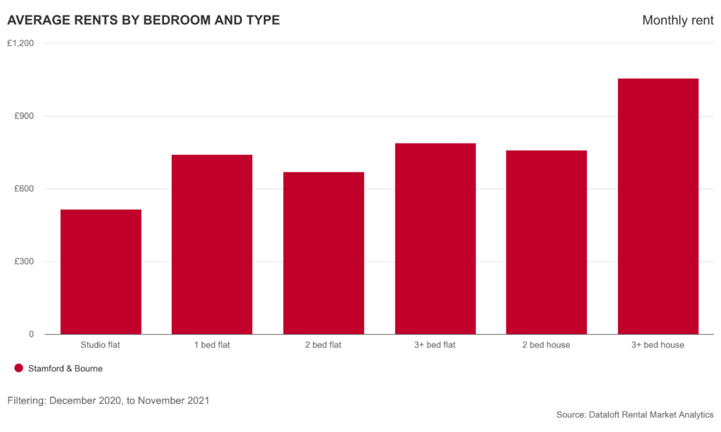 Over the last 12 months, the average rent achieved for properties let in Stamford & Bourne was £873 per month. This is a +12% change on the previous 12 month period.